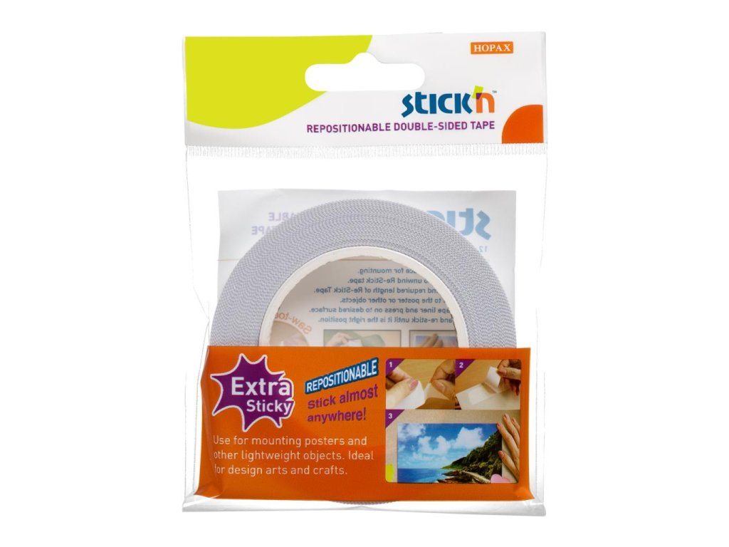 Obojstranná samolepiaca páska Stick‘n by Hopax so silnou lepivosťou pri pripevňovaní dekorácií, plagátov, fotografií alebo iných ľahkých papierových predmetov. Veľmi ľahká aplikácia aj bez nožníc. Vďaka pílovitému okraju ju možno ľahko a úhľadne odtrhnúť rukou. Po nalepení môžete pásku jednoducho odlepiť a znovu použiť. Po odlepení nezanecháva na povrchu žiadne stopy po lepidle. Farba biela. Rozmery 25 mm x 12 m.Dodatočné parametre