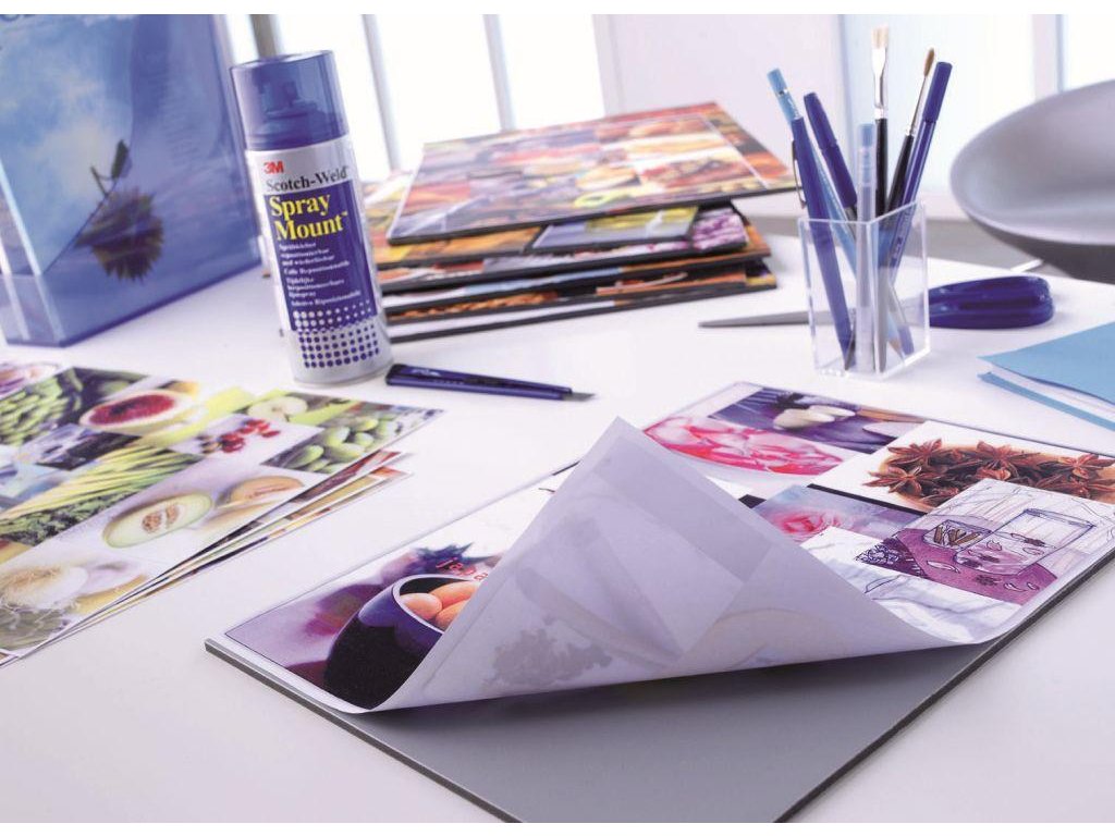 - 3M™ SprayMount™ je ideálna voľba pre umenie a dizajnový trh. Kľúčovou výhodou je možnosť premiestňovania lepených materiálov.