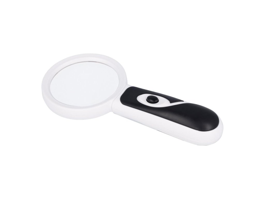 Lupa s 2 šošovkami, jeden veľký objektív s maximálne 8-násobným zväčšením a malý objektív s maximálne 12-násobným zväčšením. Okrem toho je vybavená prepínateľným energeticky úsporným LED svetlom. Batérie nie sú súčasťou balenia.Priemer 9cm. Napájanie AA batériami.