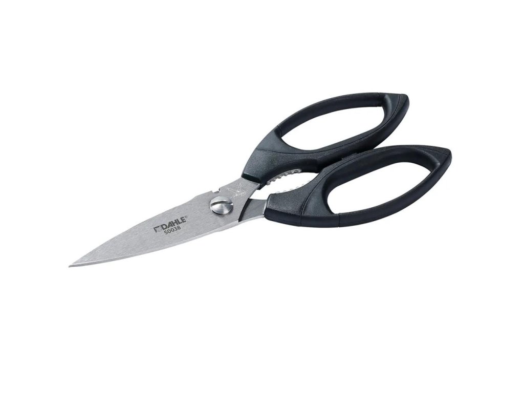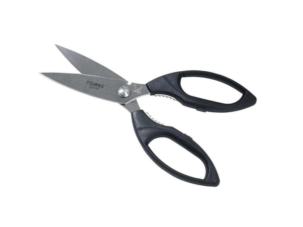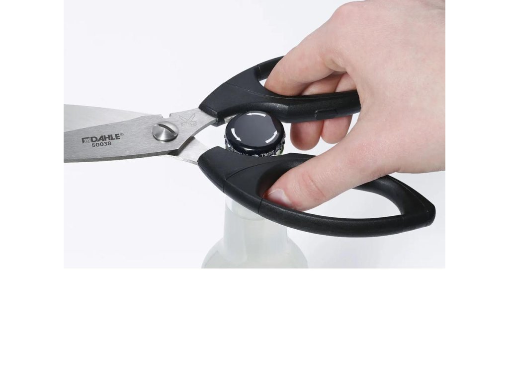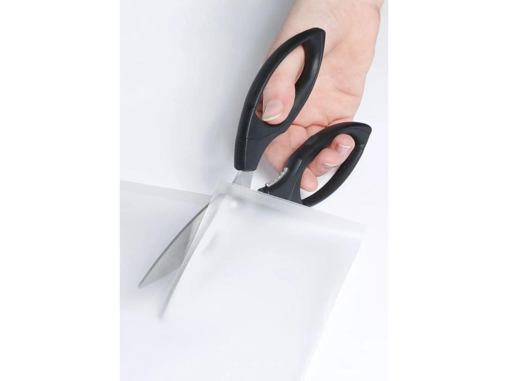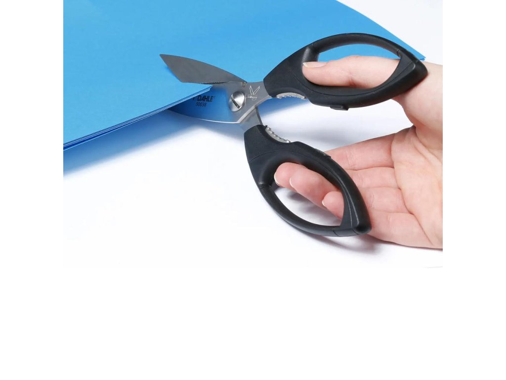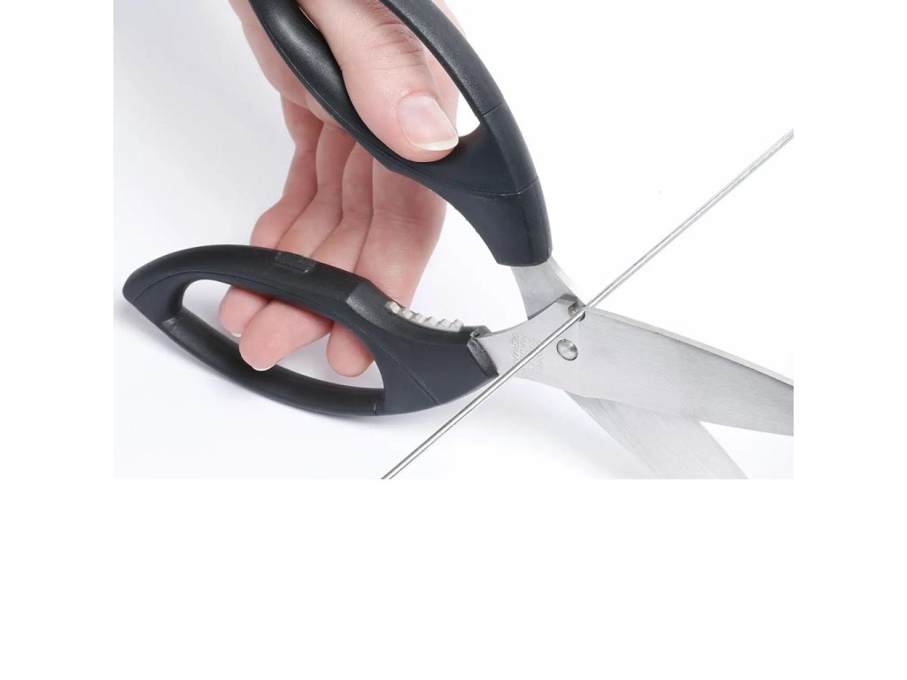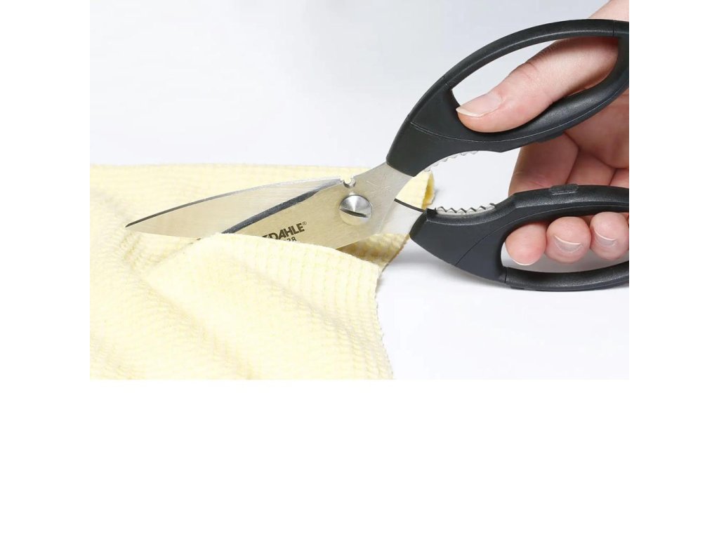 Vysokokvalitné profesionálne nožnice s precízne brúsenými čepeľami s mikro zúbkovaním a špeciálne brúseným ostrím, rukoväťou z ABS plastu a strihacou časťou z vysoko kvalitnej nehrdzavejúcej ocele. Určené na rezanie tvrdých a pevných materiálov.Nehrdzavejúce, umývateľné v umývačke riadu a farebne stály materiál pre dlhú životnosť.