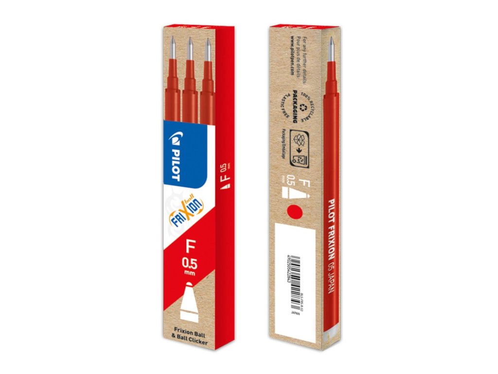 Náplň s prepisovateľným atramentom do rollerov Pilot FriXion Clickera FriXion Ball. V balení 3 ks. Gulička 0,5 mm.Farba červená.