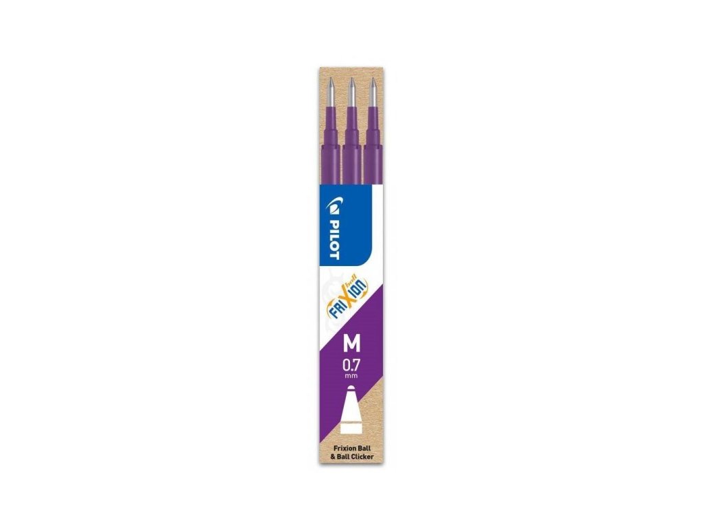 Náplň s prepisovateľným atramentom do rollerov Pilot FriXion Clickera FriXion Ball. V balení 3 ks. Gulička 0,7 mm.Farba fialová.