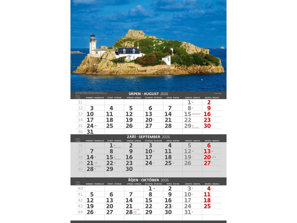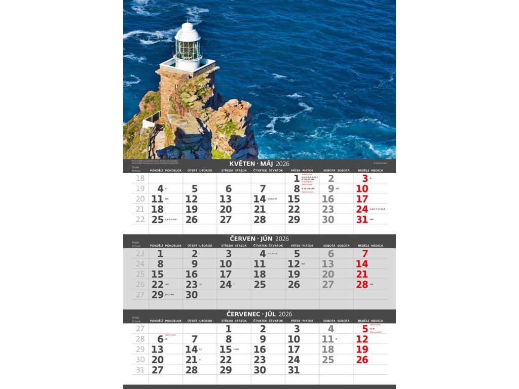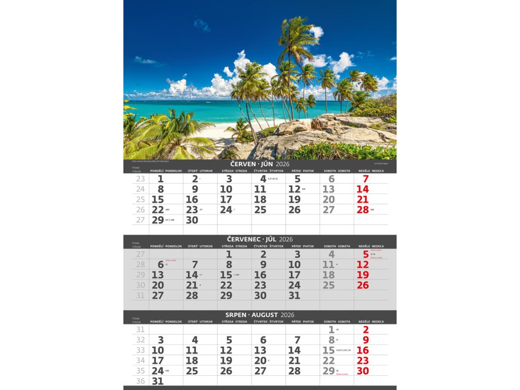 Formát kalendára: 31,5 x 45 cmKalendárium: české/slovenské trojmesačné so sviatkami európskych štátov (CZ / SK / A / B / D / F / H / CH / I / PL / RUS / UKR)