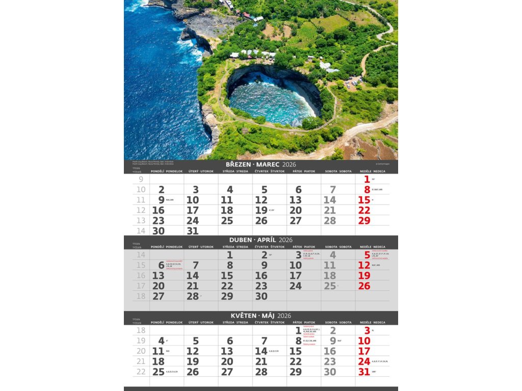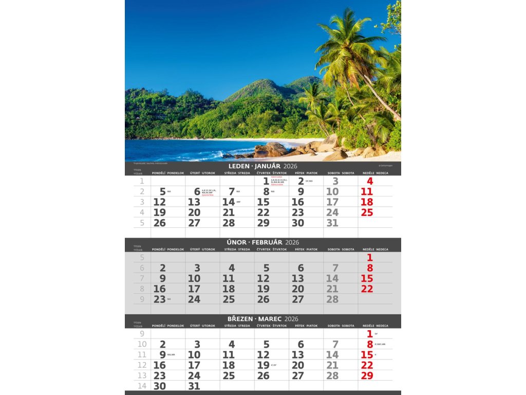 Nástenný kalendár 3-mesačný Pobrežie 31,5 x 45 cm 2026