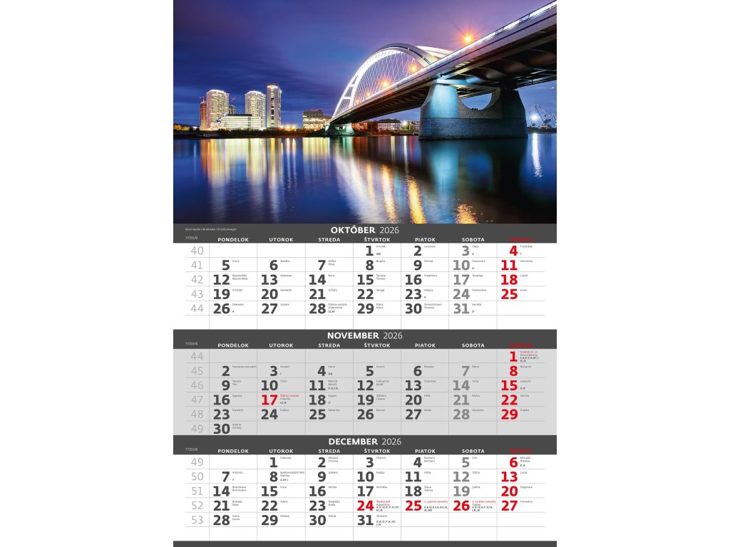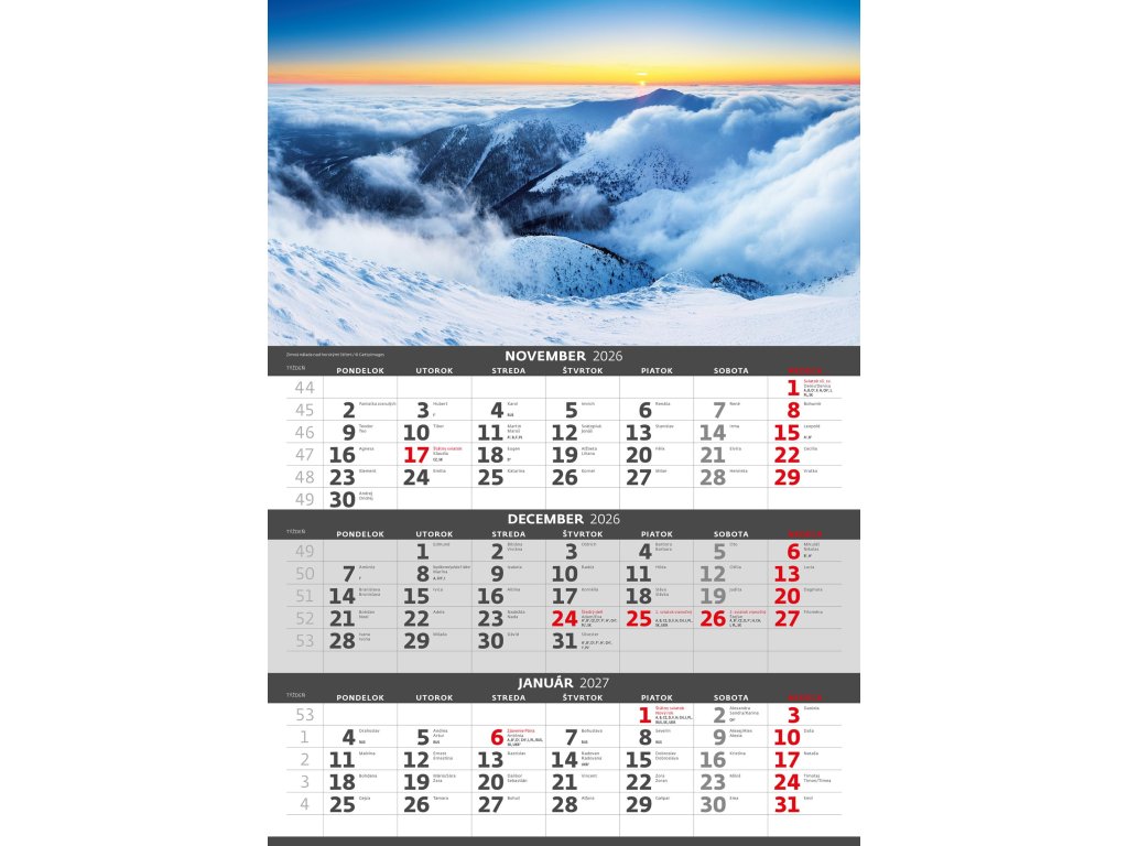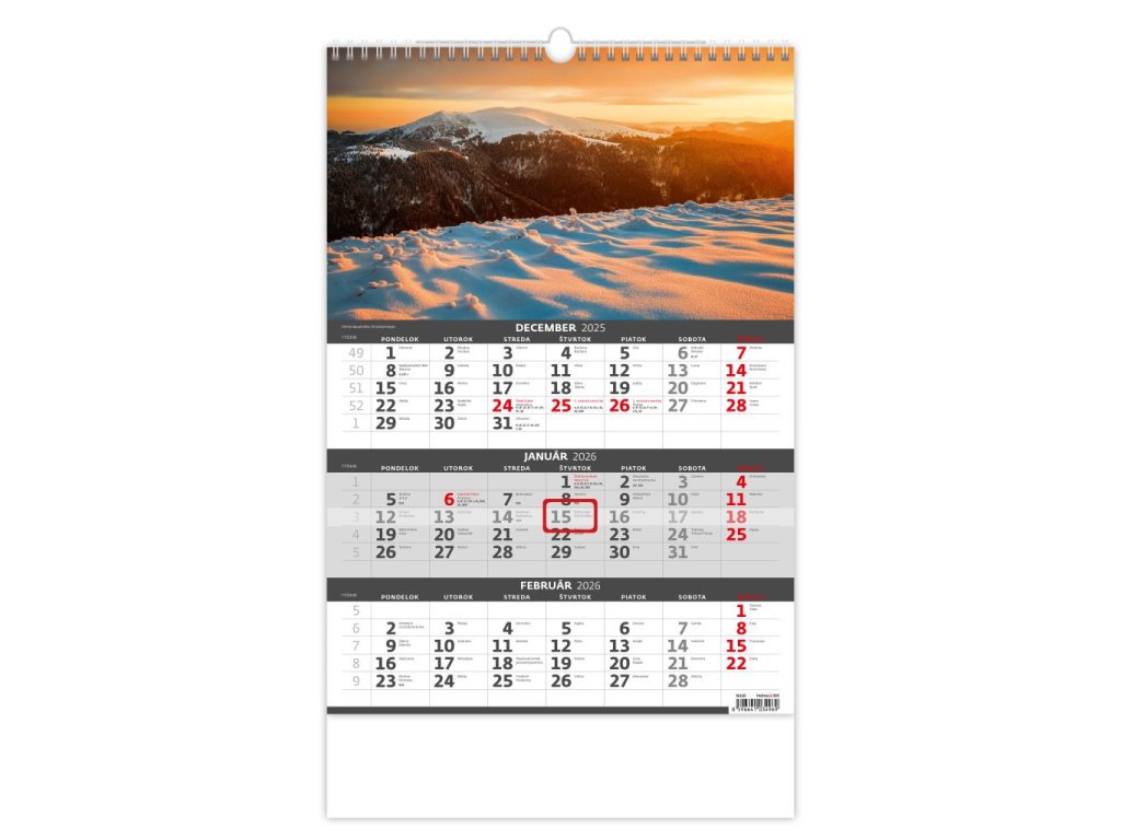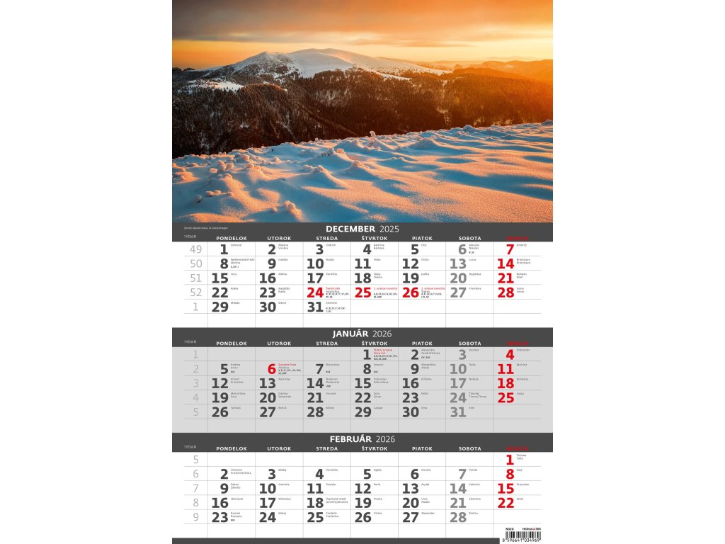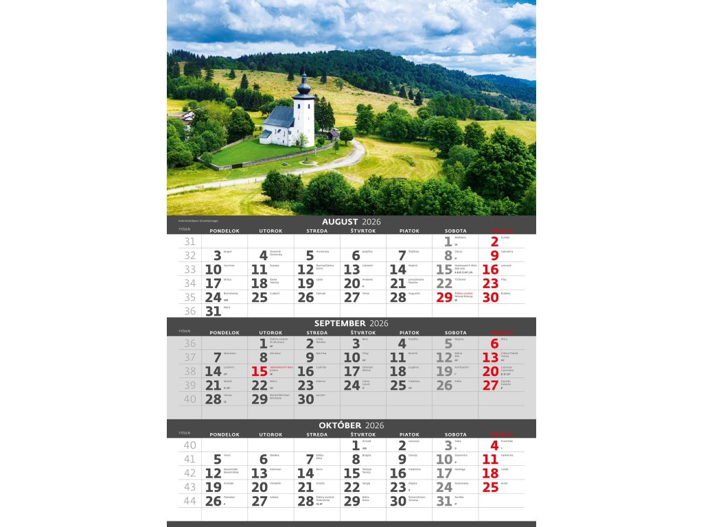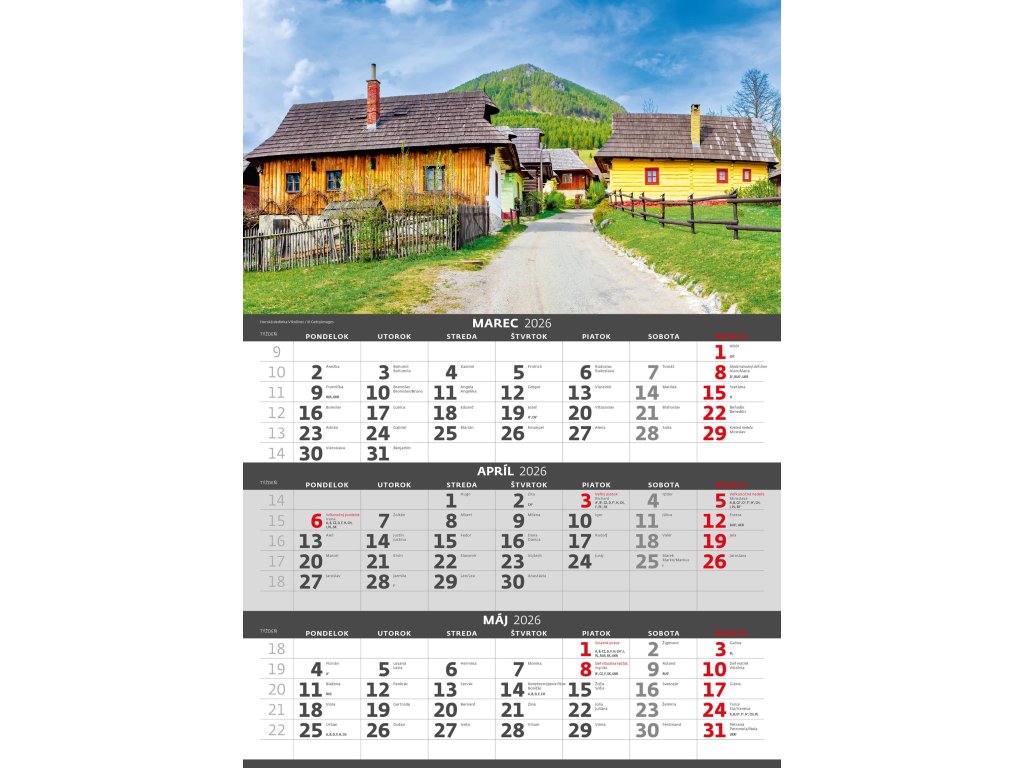 Nástenný kalendár 3-mesačný Slovensko 31,5 x 45 cm 2026
