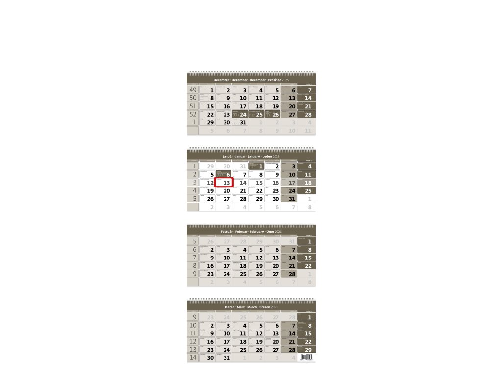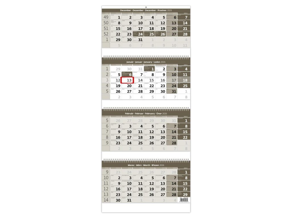 Nástenný kalendár 4-mesačný so špirálou sivý 31,5 x 74 cm 2026