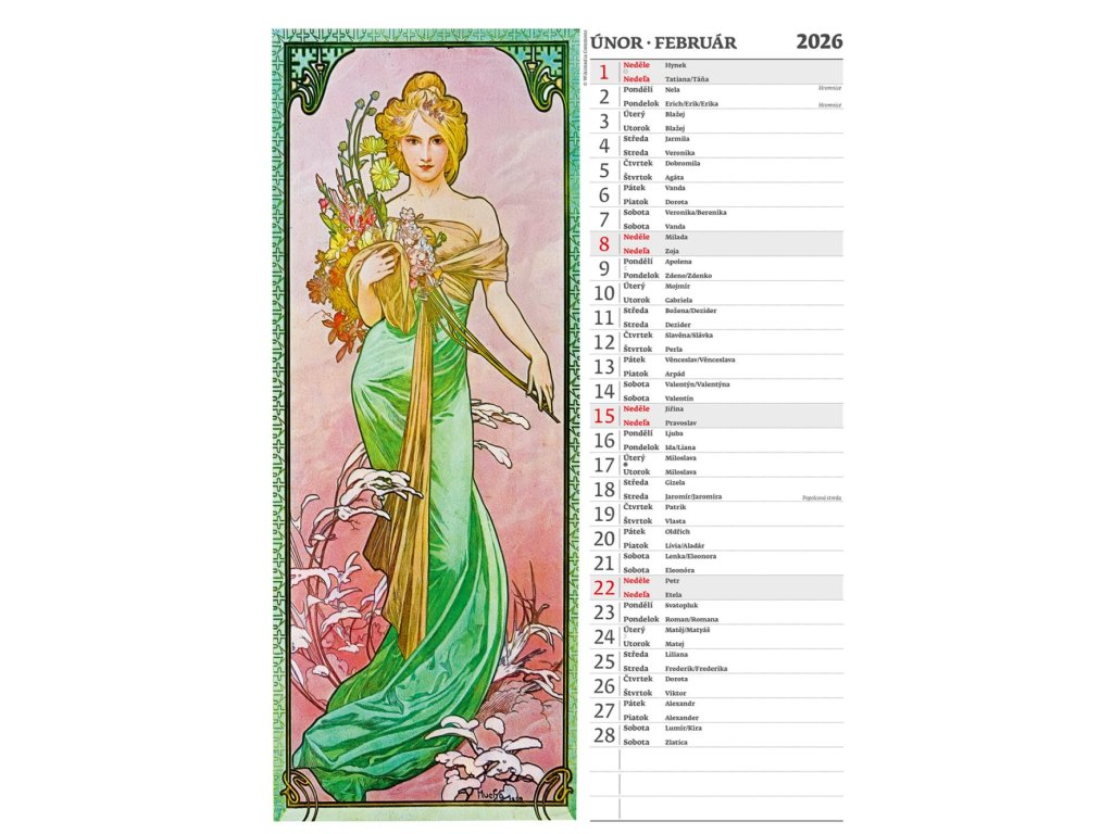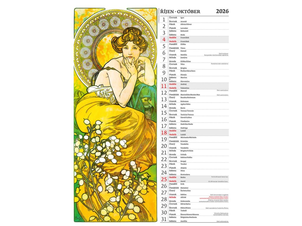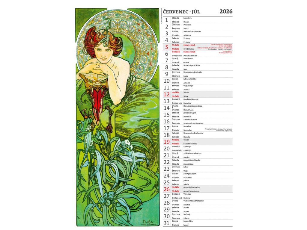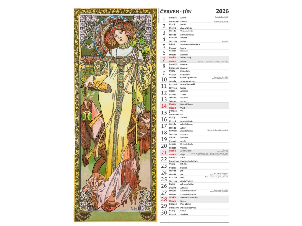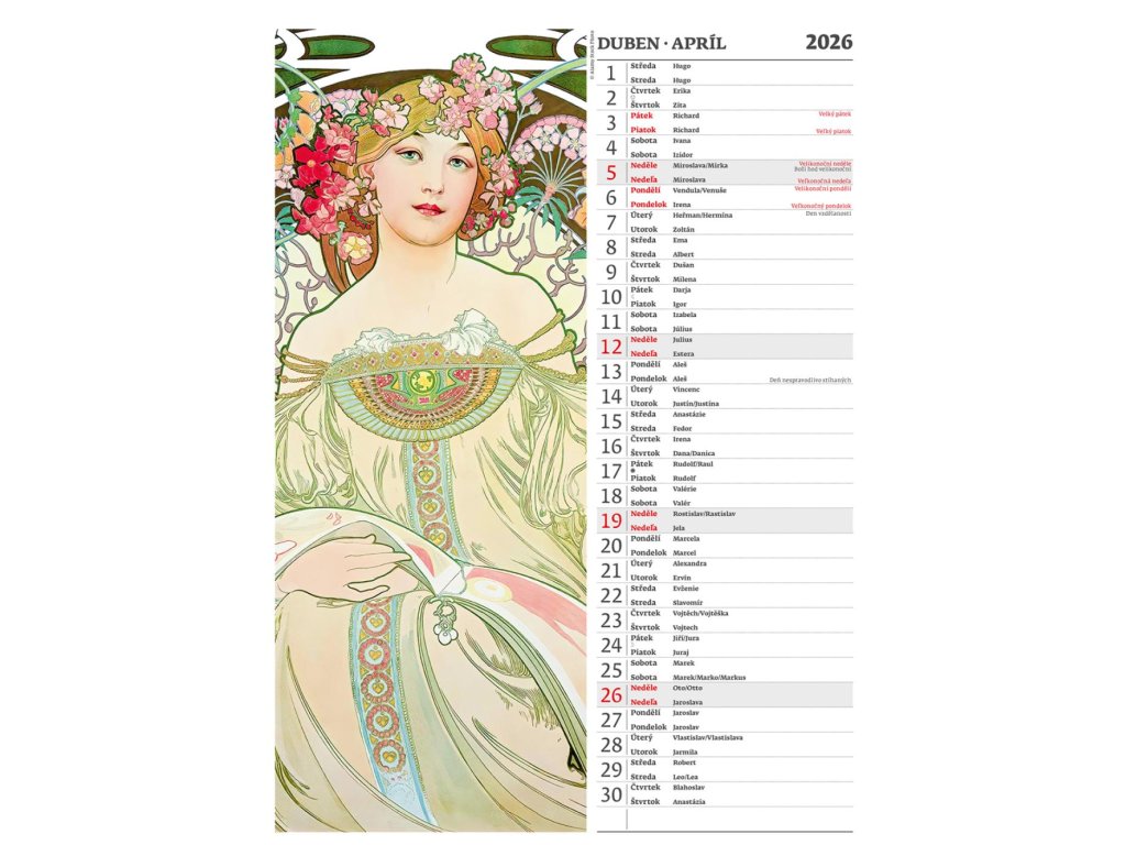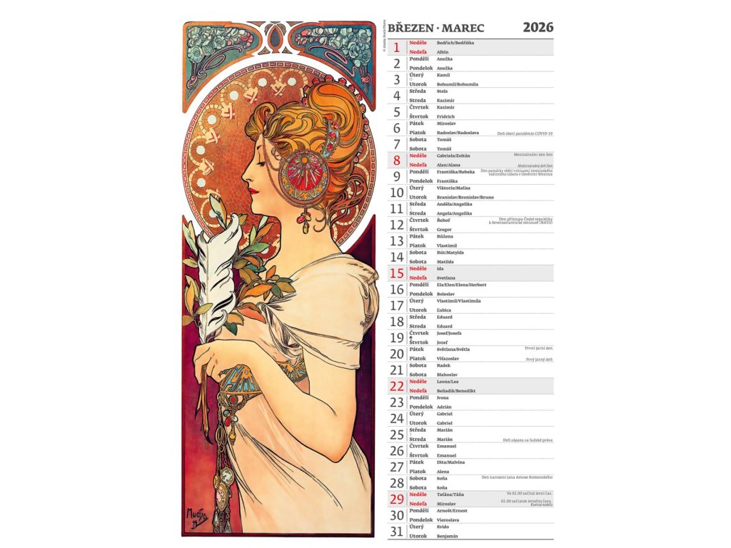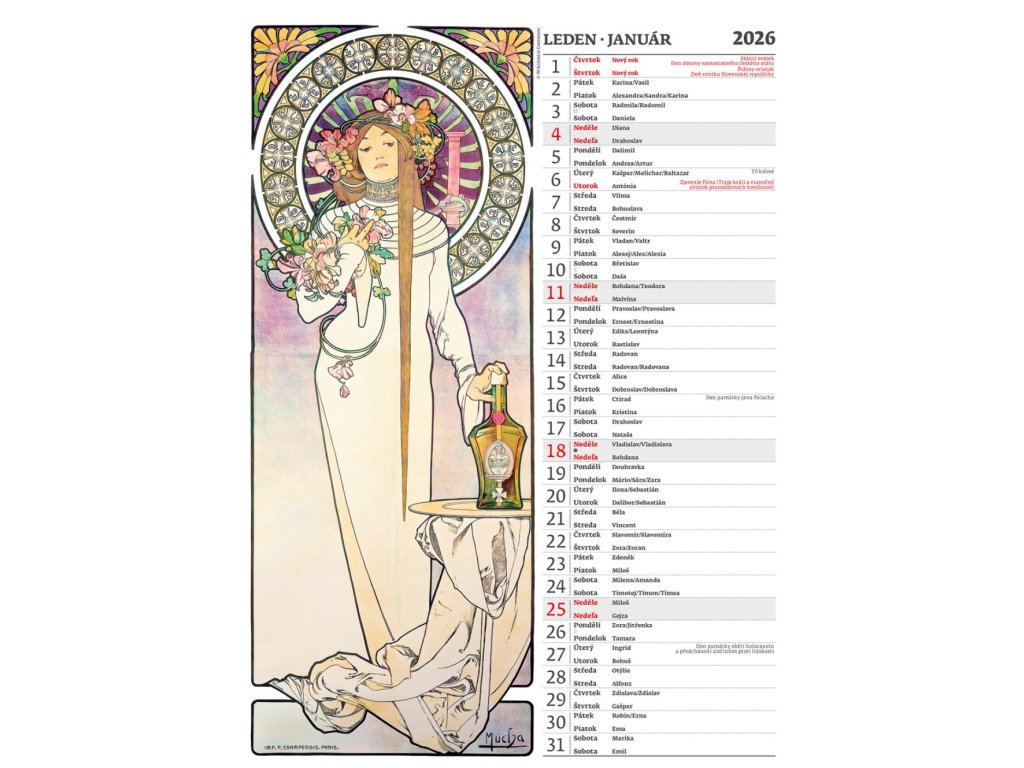 Nástenný kalendár Alfons Mucha 24 x 33 cm 2026