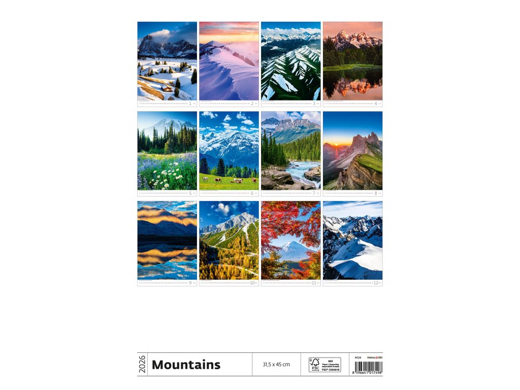 Nástenný kalendár Mountains/Berge/Hory 31,5 x 45 cm 2026