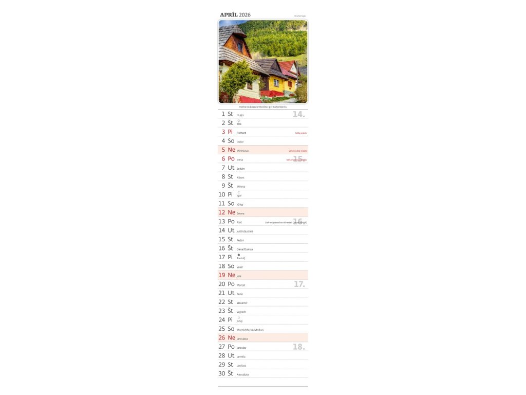 Nástenný kalendár Slovensko - viazanka 12 x 48 cm 2026