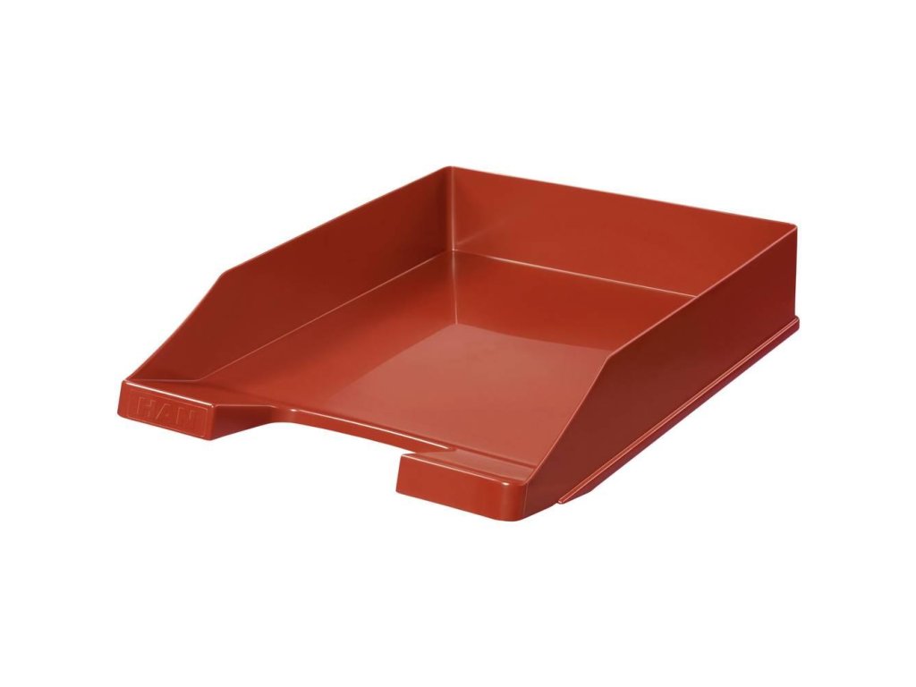 Stohovateľný odkladač formátu A4 z nepriehľadného plastu. Zadné zarážky umožňujú odkladače stohovať aj stupňovito dozadu. Väčšie balenie 10 ks.Farba: červená
