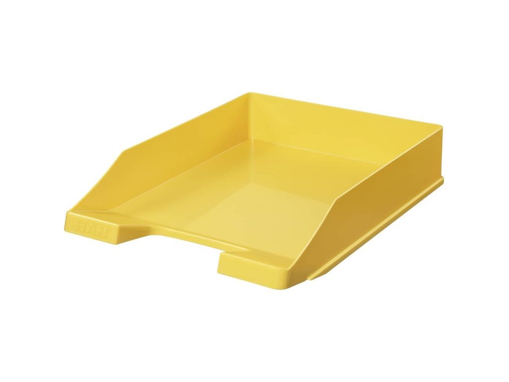 Stohovateľný odkladač formátu A4 z nepriehľadného plastu. Zadné zarážky umožňujú odkladače stohovať aj stupňovito dozadu. Balenie 10 ks.Farba: žltá
