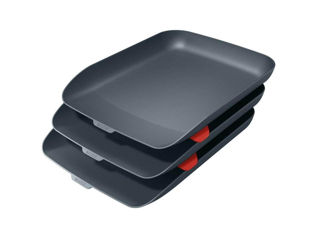 Sada troch odkladačov na listy formátu A4 na usporiadanie pracovného priestoru, dôležité dokumenty sú ľahko dostupné.Vhodné na zakladanie papierov, časopisov vo formáte A4 a C4. Odkladače je možné stohovať pomocou dvoch štýlových stohovacích prvkov v červenej farbe, ktoré sú súčasťou balenia. Široký predný otvor umožňuje ľahký prístup k obsahu, aj keď je naskladaný. Balenie bez plastov. Rad Leitz Cosy kombinuje domáce pohodlie a štýl s prvotriednou kvalitou a vytvára pozitívne a produktívne pracovné prostredie. Rozmery 1 odkladača (Š x V x H): 274 x 120 x 456 mm. Farba sivá.
