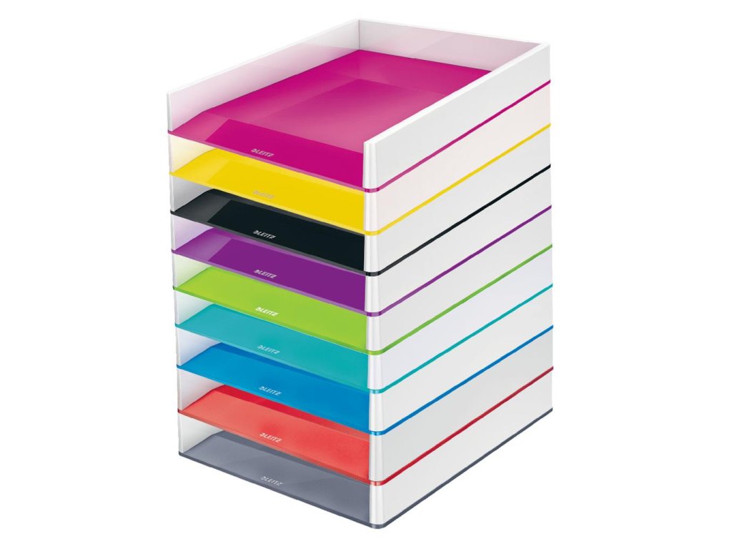 Stohovateľný kancelársky odkladač na dokumenty, časopisy a zložky v dvojfarebnom prevedení v metalických farbách WOW s lesklým povrchom. Farba biela/červená.Dodatočné parametre