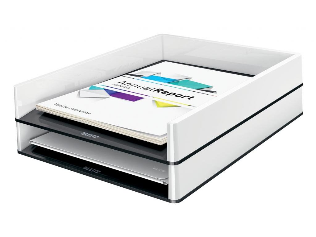 Stohovateľný kancelársky odkladač na dokumenty, časopisy a zložky v dvojfarebnom prevedení v metalických farbách WOW s lesklým povrchom. Farba biela/čierna.Dodatočné parametre
