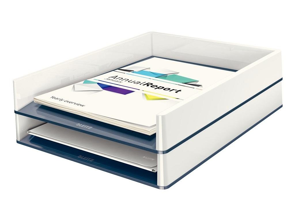 Stohovateľný kancelársky odkladač na dokumenty, časopisy a zložky v dvojfarebnom prevedení v metalických farbách WOW s lesklým povrchom. Farba sivá.Dodatočné parametre