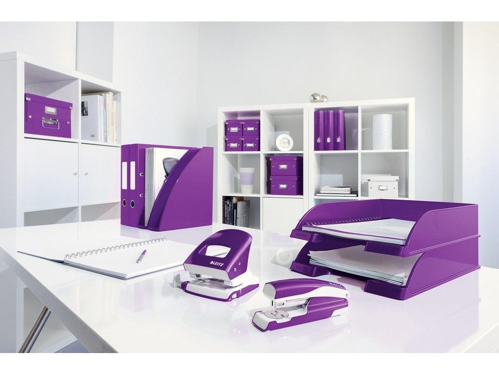 Ľahko stohovateľný plastový odkladač formátu A4 rady WOW v žiarivej farbe s možnosťou stohovania aj stupňovito dozadu. Použiteľný samostatne alebo stohovateľný do odkladacej steny. Vyššie bočné steny pre väčšiu kapacitu, extra veľký výrez na prednej časti a zošikmená odkladacia plocha na jednoduchý prístup k dokumentom. Maximálna stohovateľnosť 10 odkladačov. Väčšie balenie 5 alebo 10 ks.Farba: purpurová