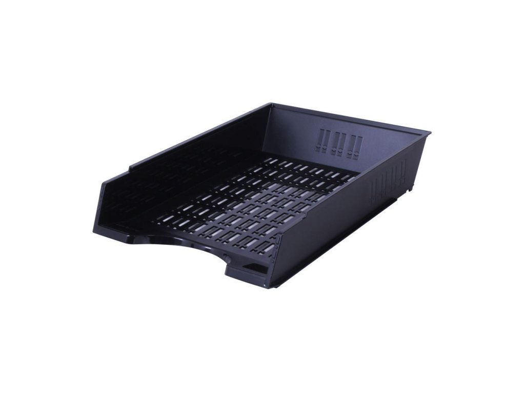 Plastový odkladač na papiere formátu A4 s možnosťou stohovania dozadu. Úprava nepriehľadná. Väčšie balenie 10 ks.Farba: čierna