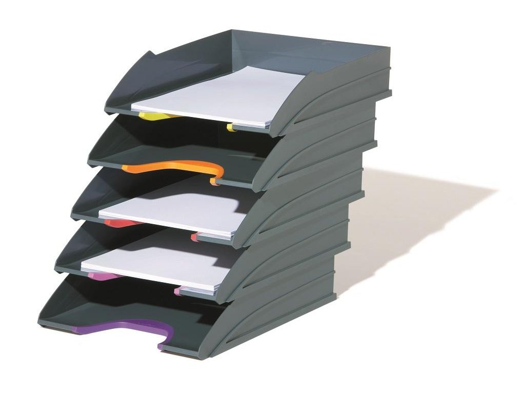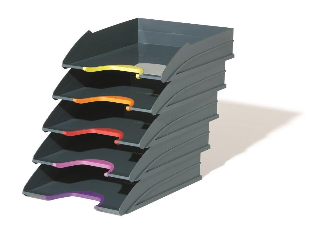 Sada piatich odkladačov v trendových farbách. Formát A4-C4.• 5 zásobníkov na listy