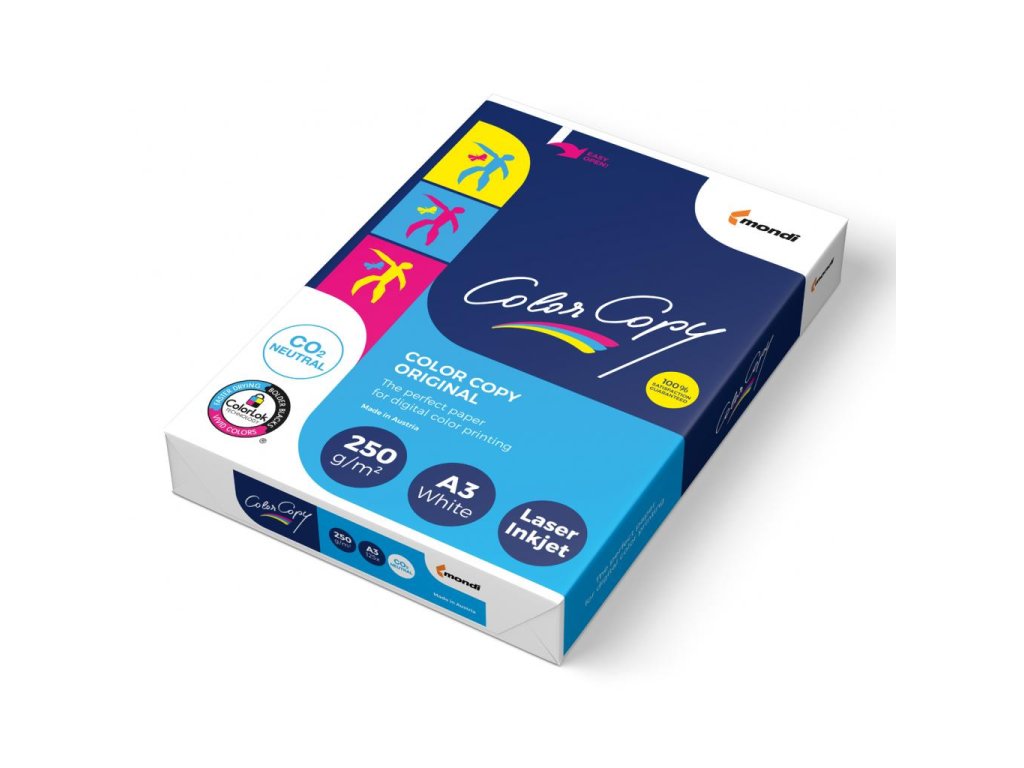 Špeciálny papier na brilantnú farebnú digitálnu tlač do laserových tlačiarní a farebných kopírovacích strojov. Vysoká belosť, matná saténová úprava. Výsledkom sú vysokokvalitné farebné výtlačky a kópie.Papier má certifikát FSC (Forest Stewardship Council), ktorý vydáva medzinárodná organizácia. Formát A3, gramáž 250 g, bal.125 hárkov.Dodatočné parametre