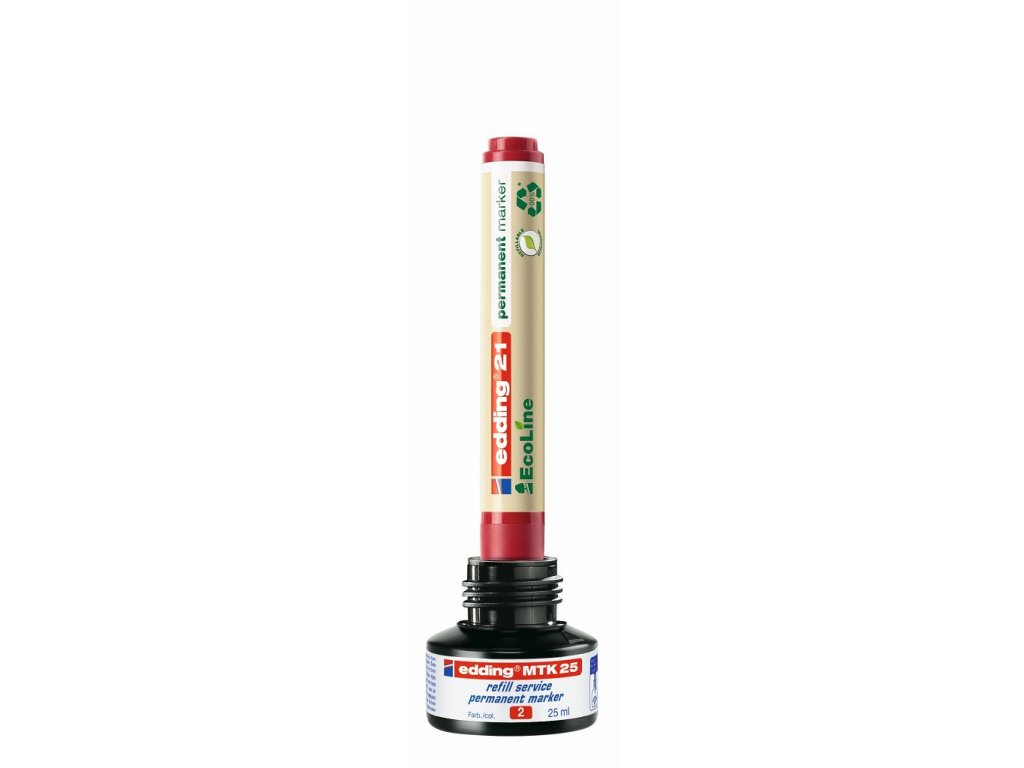 Permanentný popisovač vhodný na trvanlivé popisovanie, značenie, maľovanie a vyznačovanie takmer na všetky materiály, dokonca na kov, sklo a umelú hmotu. Minimálne 80 % plastovej časti je vyrobených z recyklovaného materiálu. Okrúhly hrot, šírka stopy 1,5 - 3 mm. Rýchloschnúci, vodeodolný, slabo zapáchajúci atrament intenzívnej farby bez obsahu toluénu/ xylénu. Väčšie balenie 10 ks.Farba: červená