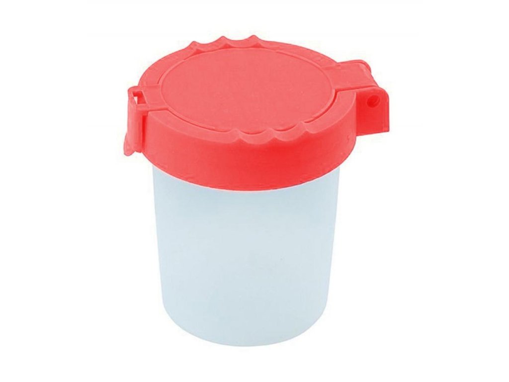 Praktický plastový pohárik na vodu výšky 9 cm s vrchnákom, ktorý zabraňuje vytekaniu obsahu. Vhodný pre vodou riediteľné farby, príp. na odkladanie štetcov. Obsah 150 ml. Priehľadné telo, vrchnák v červenej a modrej farbe.Dodatočné parametre