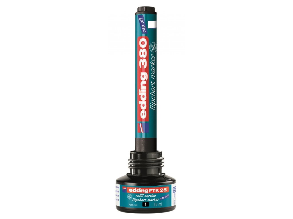 Popisovač s atramentom na vodnej báze a vlastnosťou Cap off, zabraňujúcou vysychaniu atramentu pri otvorenom hrote aj niekoľko dní. Na popisovanie flipchartových blokov a iných archov papiera. Opätovne naplniteľné atramentom FTK 25 (obj. kód ED625101), ktorý neprepíja na druhú stranu papiera. Hrot okrúhly, šírka stopy 1,5 - 3 mm. Väčšie balenie 10 ks.Farba: čierna
