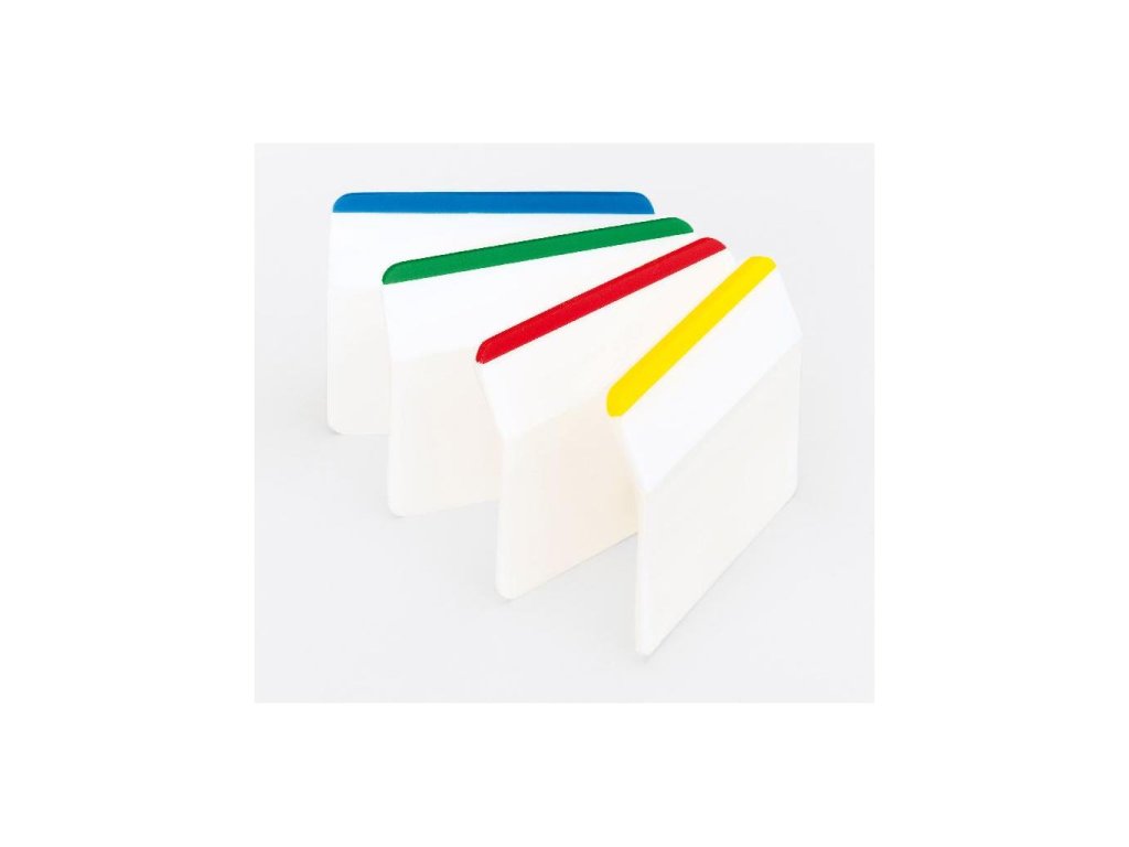 Záložky na sprehľadnenie obsahov závesných obalov v registroch, kartotékach, archívoch a pod. Znovunalepiteľné a popisovateľné. Rozmery záložky 50,8 × 38 mm. Dodávané v balení 4 farieb (červená, modrá, zelená, žltá) po 6 ks.- Post-it® záložky pomáhajú vytvoriť poriadok jednoduchým rozdelením plánovačov, kalendárov a zložiek na samostatné časti.