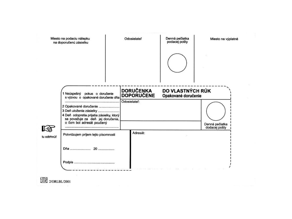 Poštové obálky B6 doručenka do VR OD, Doposielať, 1000 ks