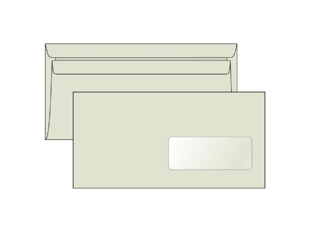 Obálky DL + okienko 110x220 mm vyrobené zo 100 % recyklovaného papiera 80 g LETTURA samolepiace. Balenie obsahuje 1000 ks. Rozmer okienka 42x104mm (zprava 15mm zdola 28mm).Dodatočné parametre