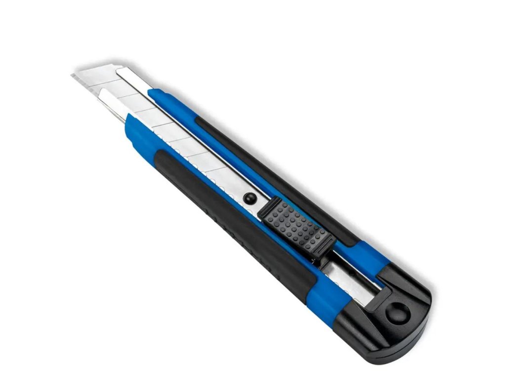 Protišmykový univerzálny rezač pre ostré rezy a hladké hrany s odlamovacím nožom, kovovou čepeľou a aretáciou.S robustným krytom z odolného ABS plastu.