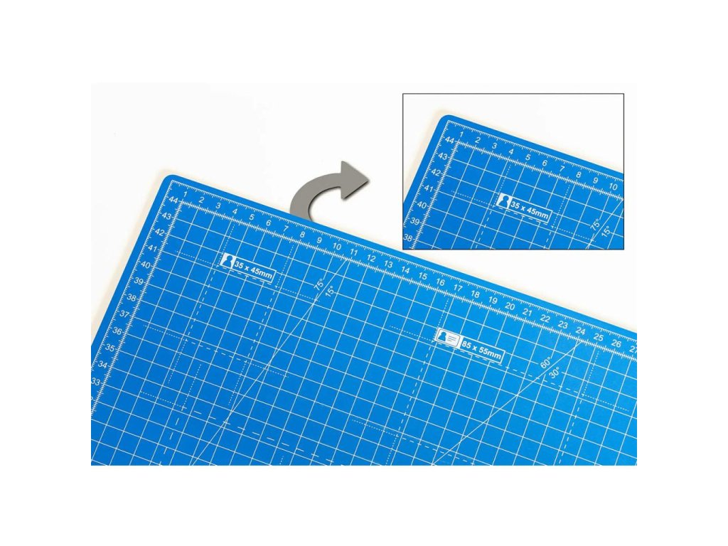 Obojstranná rezacia podložka s robustnou 5-vrstvovou konštrukciou s jadrom odolným proti prerezaniu, s predtlačenou mriežkou na jednej strane a protišmykovou stranou, poskytuje čisté a precízne rezanie a chráni pracovný povrch pred dorezaním.Prehľadne usporiadané vodiace čiary pre optimálne umiestnenie rezaného materiálu.