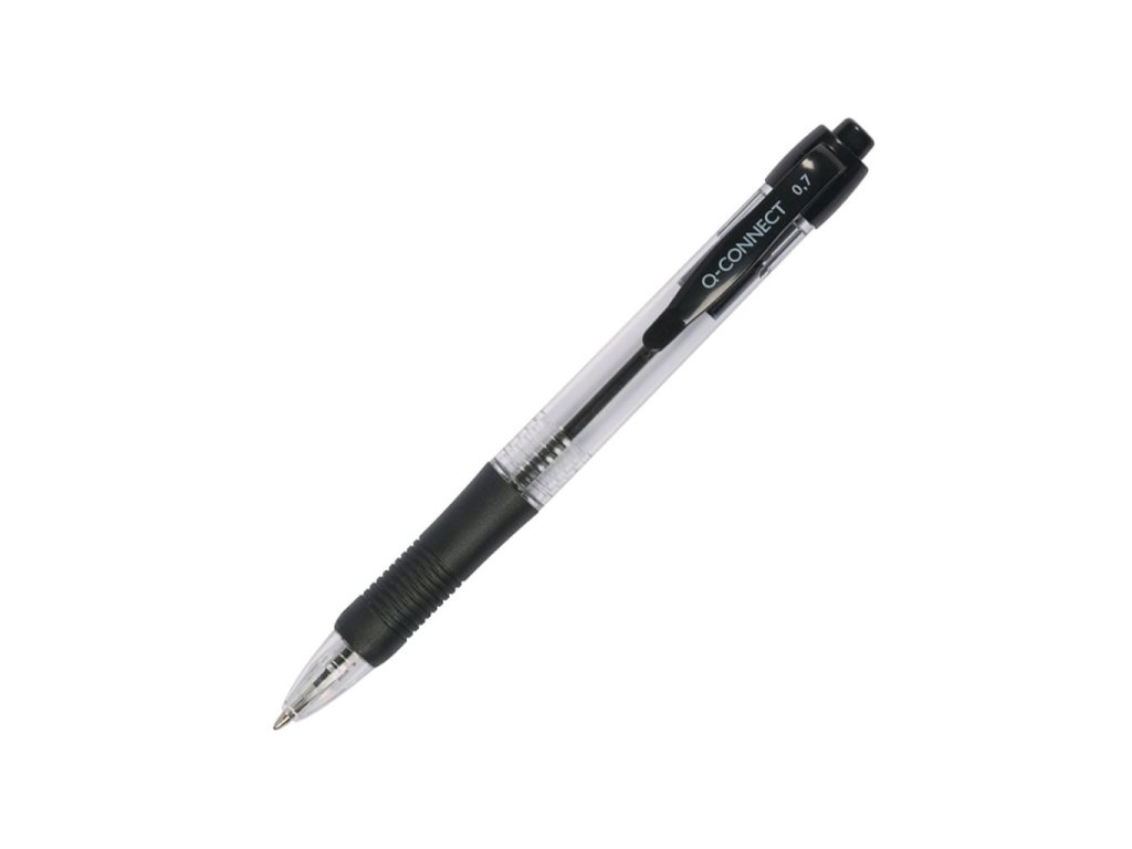 Klikací roller s robustnejším transparentným telom a gumeným úchytom. Farba tela vo farbe náplne. Guľôčka 0,7 mm, šírka stopy 0,5 mm. Väčšie balenie 12 ks.Farba: čierna