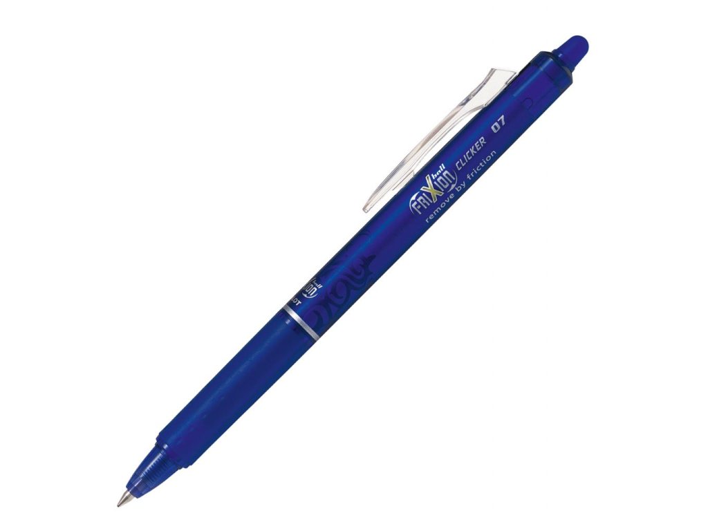 Gumovací roller s klikacím mechanizmom plnený špeciálnym atramentom. Napísaný text sa dá vymazať a opätovne prepísať. Text zneviditeľníte zahriatím na 65 °C, ktoré vznikne trením plastového zakončenia rollera po papieri. Znova sa objaví až pri teplote nižšej ako -15 °C. Farba tela vo farbe náplne. Väčšie balenie 12 ks.Guľôčka 0,7 mm, šírka stopy 0,35 mm. Náhradná náplň obj. kód PI206703.Farba: modrá