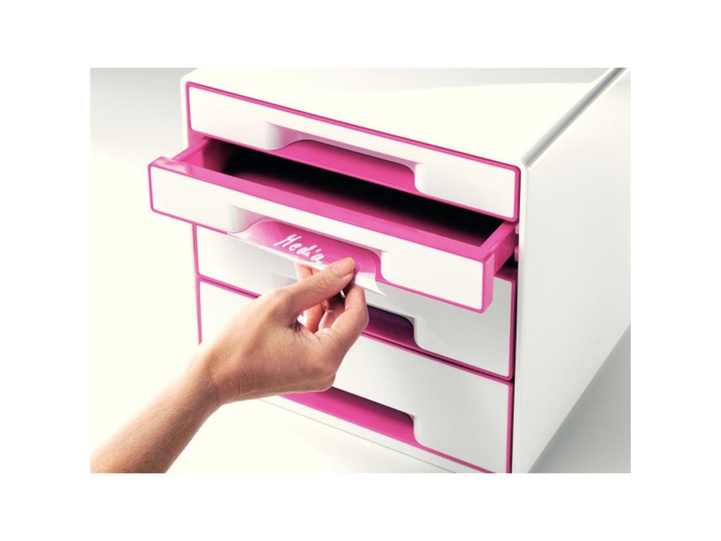5 priehľadných držiakov na štítky do zásuvkového boxu WOW CUBE. Popisovateľné akýmkoľvek popisovačom. Jednoduchým nasadením na zásuvku označíte obsah zásuvky. Nenápadný doplnok s nasúvacím mechanizmom vďaka priehľadnému dizajnu.Dodatočné parametre