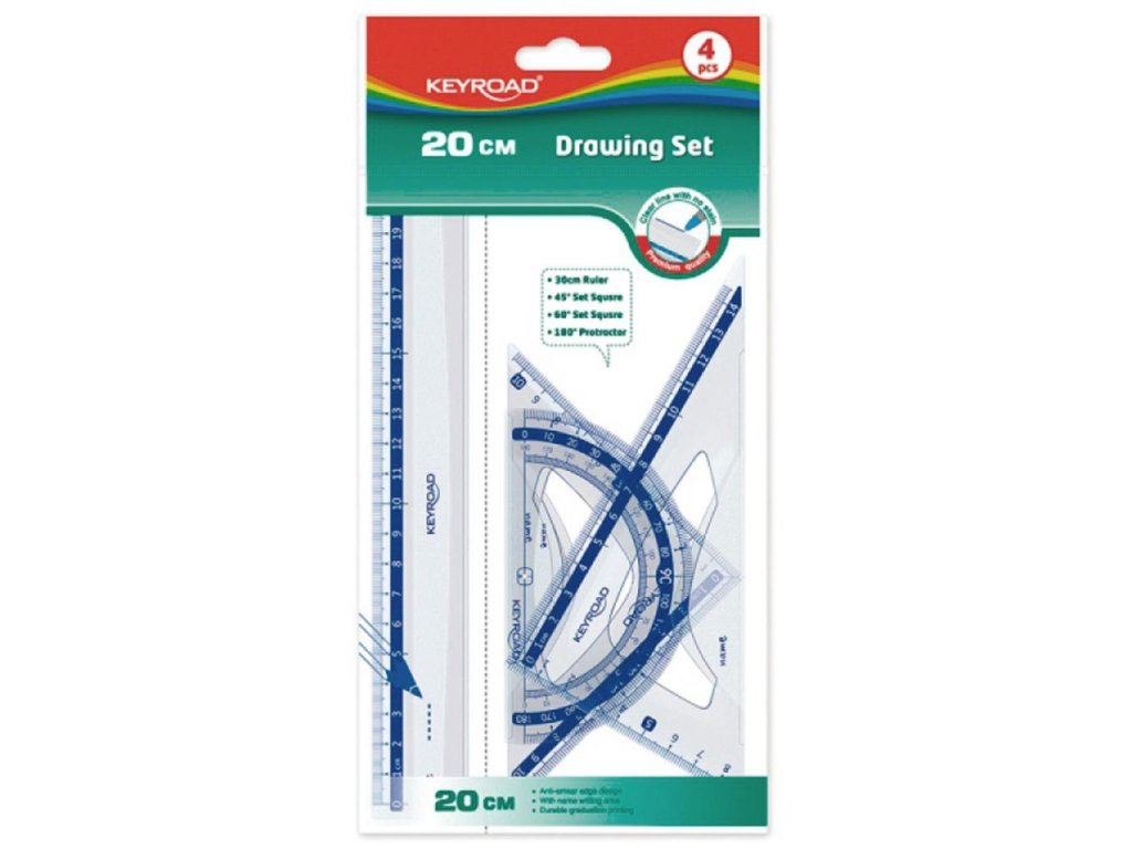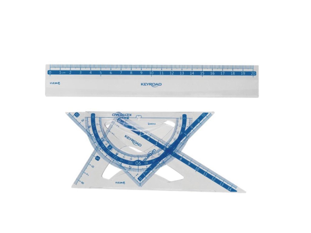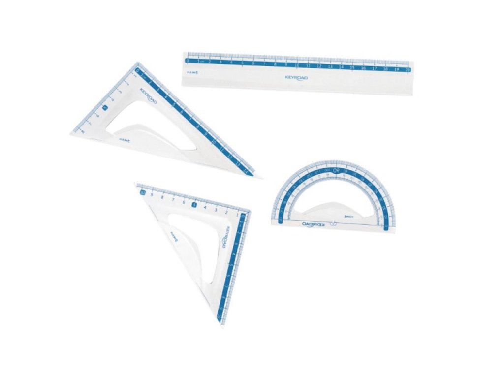Sada plastických geometrických pomôcok, užitočná pre každého študenta. Mierka podľa noriem. Sada: pravítko 20 cm, uhlomer 10 cm, sada trojuholník 14 cm a 10 cm. Farba transparentná.Dodatočné parametre