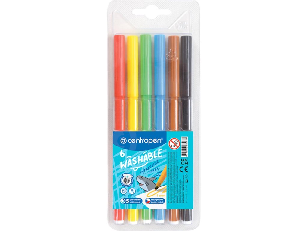 Popisovač vyrobený z PP s ventilačným bezpečnostným uzáverom a vláknovým hrotom odolným voči zatlačeniu. Šírka stopy 1,8 mm. Dodávaný v sade 6 farieb.Farba: sada 6 ks