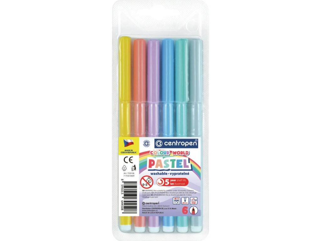 Vyprateľné farebné pastelové popisovače s ERGO držaním odolávajú vyschnutiu až 5 rokov. Zdraviu neškodlivý atrament, ventilačný vrchnák valcový hrot odolný voči zatlačeniu, šírka stopy 1 mm. Sada 6 popisovačov.Dodatočné parametre