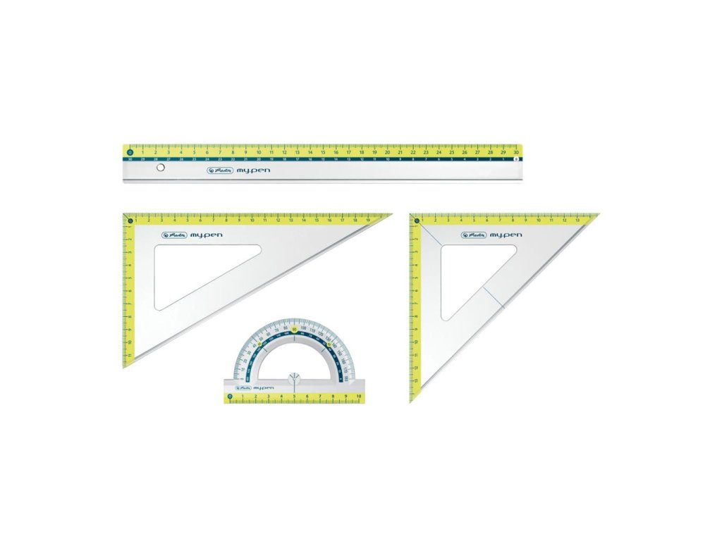 Sada pravítok pre geometriu my.pen 4 diely, plastová - z nelámavého materiálu, mix farieb.Dodatočné parametre