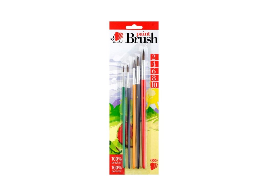 5 kusová sada guľatých školských štetcov s farebnou rúčkou. Štetina 100% poník. Ideálne na maľovanie vodovými farbami. Šírka štetiny 2-4-6-8-10 mm.Dodatočné parametre