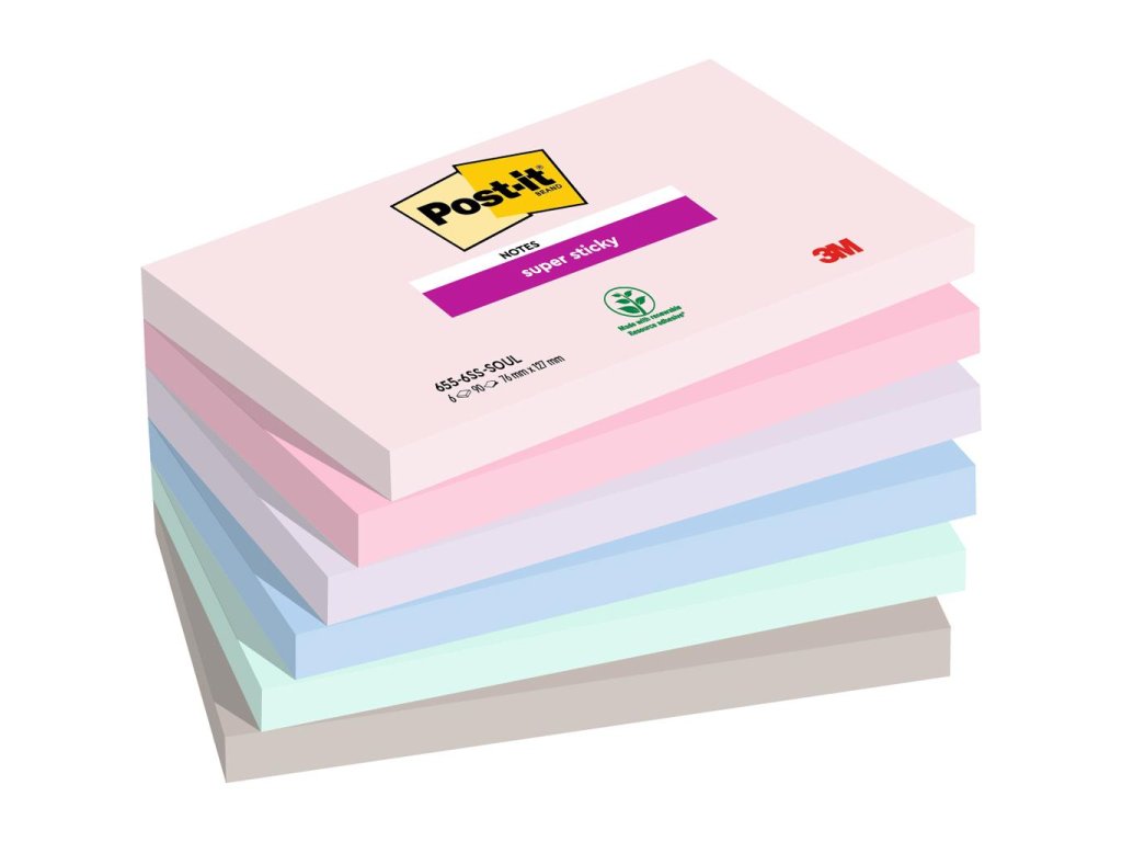 Samolepiaci bloček Post-it Super Sticky SOULFUL, veľkosť 76x127 mm, 6 bločkov po 90 lístkov