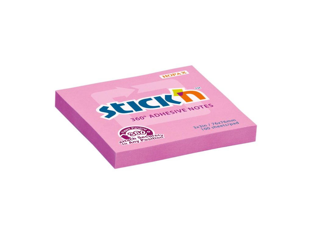 Samolepiaci bloček Stick’n Hopax, 360°, 76x76 mm, ružový