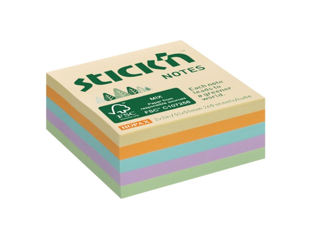 Samolepiaci bloček Stick’n Hopax mini, 51x51 mm, lúčny mix pastelových farieb, 240 lístkov