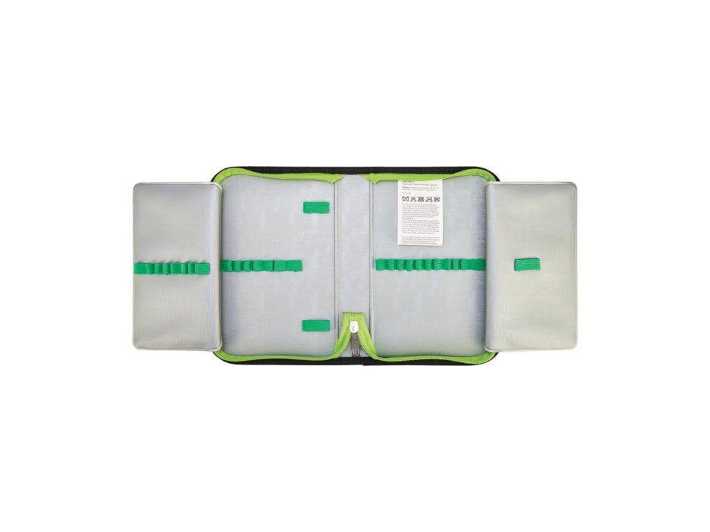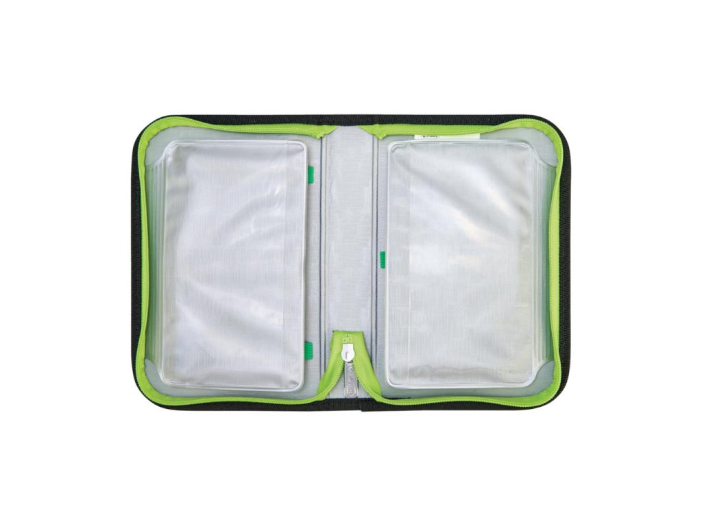 Priestranné hlavné vrecko s oddeleným priečinkom na knihy.