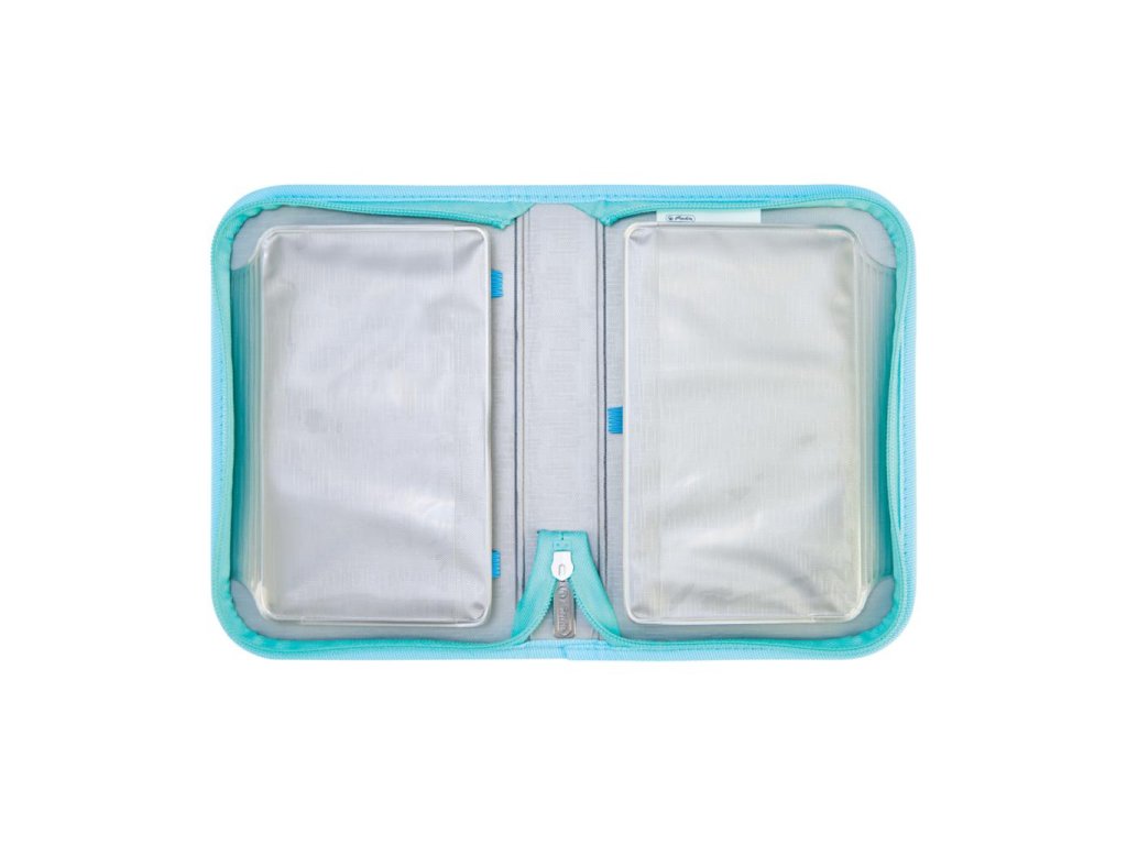 Školská taška s výbavou, s anatomicky tvarovaným polstrovaným a priedušným chrbtom, nastaviteľnými ramennými popruhmi, predným vreckom na zips, dvomi bočnými vreckami s elastickými pásikmi, stabilnou spodná doskou s nožičkami, pohodlnou rukoväťou, reflexnými prvkami Oralite, zatváranie Click lock zips, 1 x odnímateľný odznačik na suchý zips, 1 x dekoratívny prvok. Hmotnosť 800 g, objem 22 l, rozmery: 39 x 32 x 25 cm. Vode-odolná, bez PVC, výbava: peračník prázdny 2 chlopne, vrecko na prezuvky, oválne puzdro.Dodatočné parametre