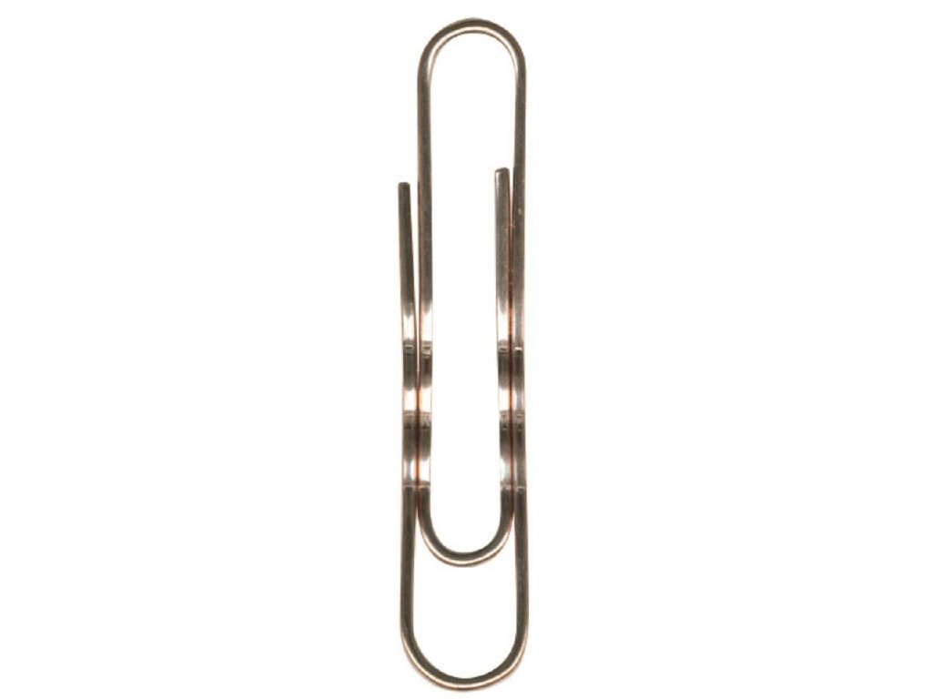 Veľké spisové spony v medenej úprave.Materiál: meď