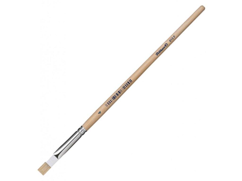Plochý štetec s krátkymi štetinami. Drevená rukoväť lakovaná bezfarebným lakom a hliníkovým úchytom, s hrúbkou stopy 4 mm. Určený k maľovaniu a kresleniu na papier.Dodatočné parametre