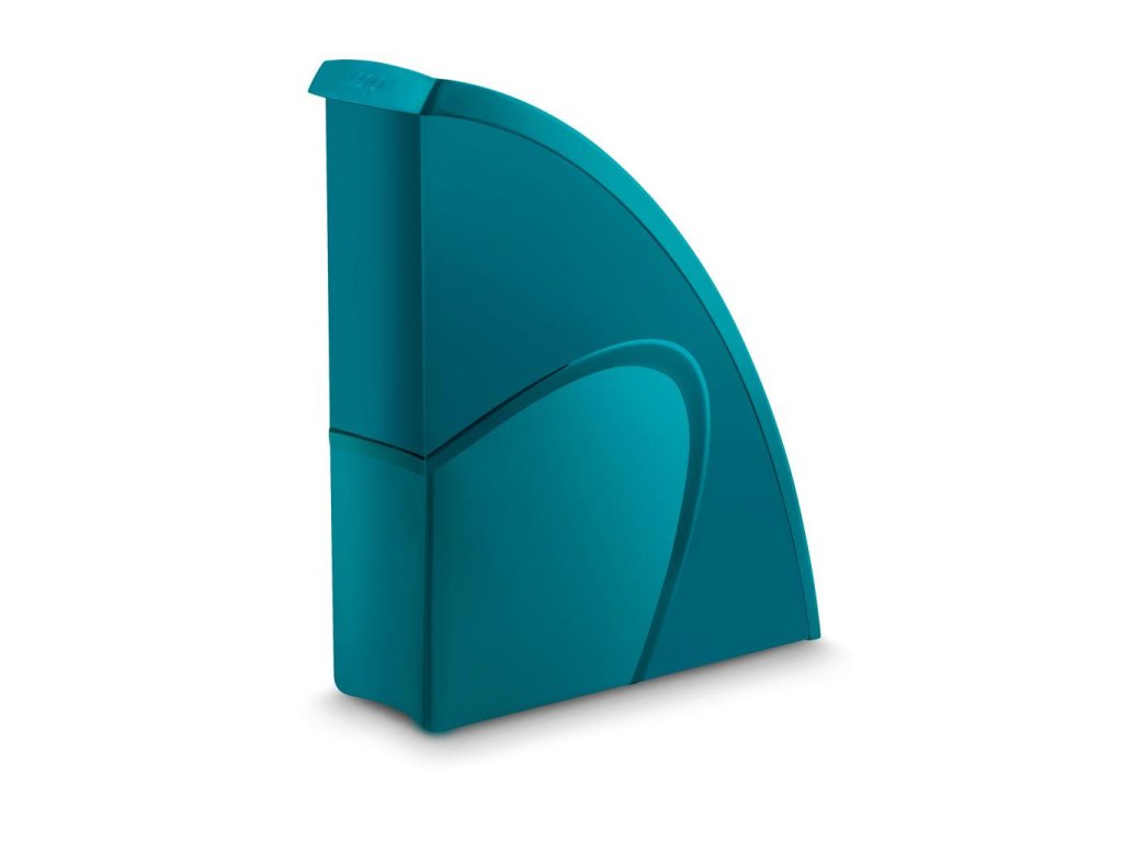 Stojan na časopisy s možnosťou vertikálneho alebo horizontálneho postavenia má elegantné línie, zvýraznené materiálom s kontrastným matným povrchom na hladkom pozadí. Vhodný na dokumenty do veľkosti 24 × 32 cm. Kapacita 700 listov (80 g / m²), rozmery 270 × 85 × 310 mm. Materiál 100% recyklovateľný vysokokvalitný plast. Väčšie balenie 10 ks. Farba smaragdová.Dodatočné parametre