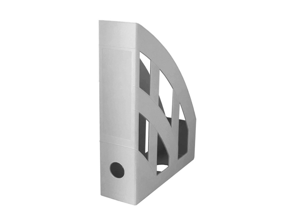 Plastový stojan na časopisy zaoblený dizajn - odolný materiál, miesto na etiketu na chrbte. Farba sivá.Dodatočné parametre