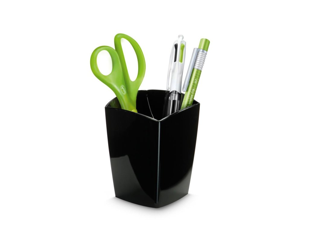 Stojan na ceruzky a perá v modernom dizajne, vhodný do kancelárie, aj do bytu. Vynikajúca stabilita, dve priehradky. Kapacita 32 pier, celkové rozmery 74 × 74 × 95 mm. Materiál 100% recyklovateľný, vysokokvalitný plast. Stojan GreenSpirit v čiernej farbe je vyrobený zo 100% recyklovaných materiálov, jednotlivé kusy sa môžu navzájom jemne farebne líšiť. Väčšie balenie 12 ks. Farba čierna.Dodatočné parametre