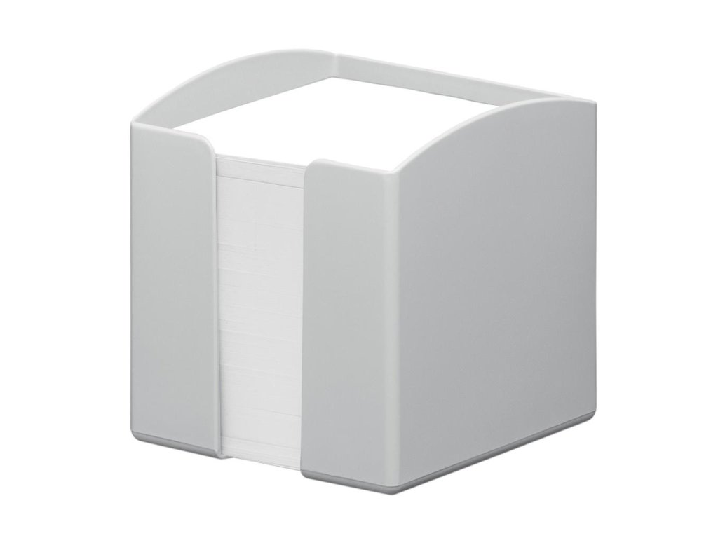 Stojan na poznámkový blok z recyklovaných plastov v kvalite Blue Angel. S 800 lístkami recyklovaného papiera v kvalite Blue Angel, veľkosť 93 x 93 mm. Rozmery: 100 x 105 x 100 mm (Š x V x H). Farba sivá.Dodatočné parametre